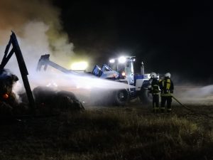 Kurz nach Mitternacht am 11. August 2018 wurde der Brand einer Feldscheune im Ehndorfer Hochmoor gemeldet. Die Nachbarwehren aus Arpsdorf, Padenstedt und Wasbek kamen hinzu. Ebenfalls wurde vom THW Unterstützung durch zwei Radlader bereitgestellt, welche die brennenden Ballen in die Breite verteilten. Die Löscharbeiten dauerten bis Samstag Mittag an. Am Sonntag musste noch einmal geringfügig nachgelöscht werden.