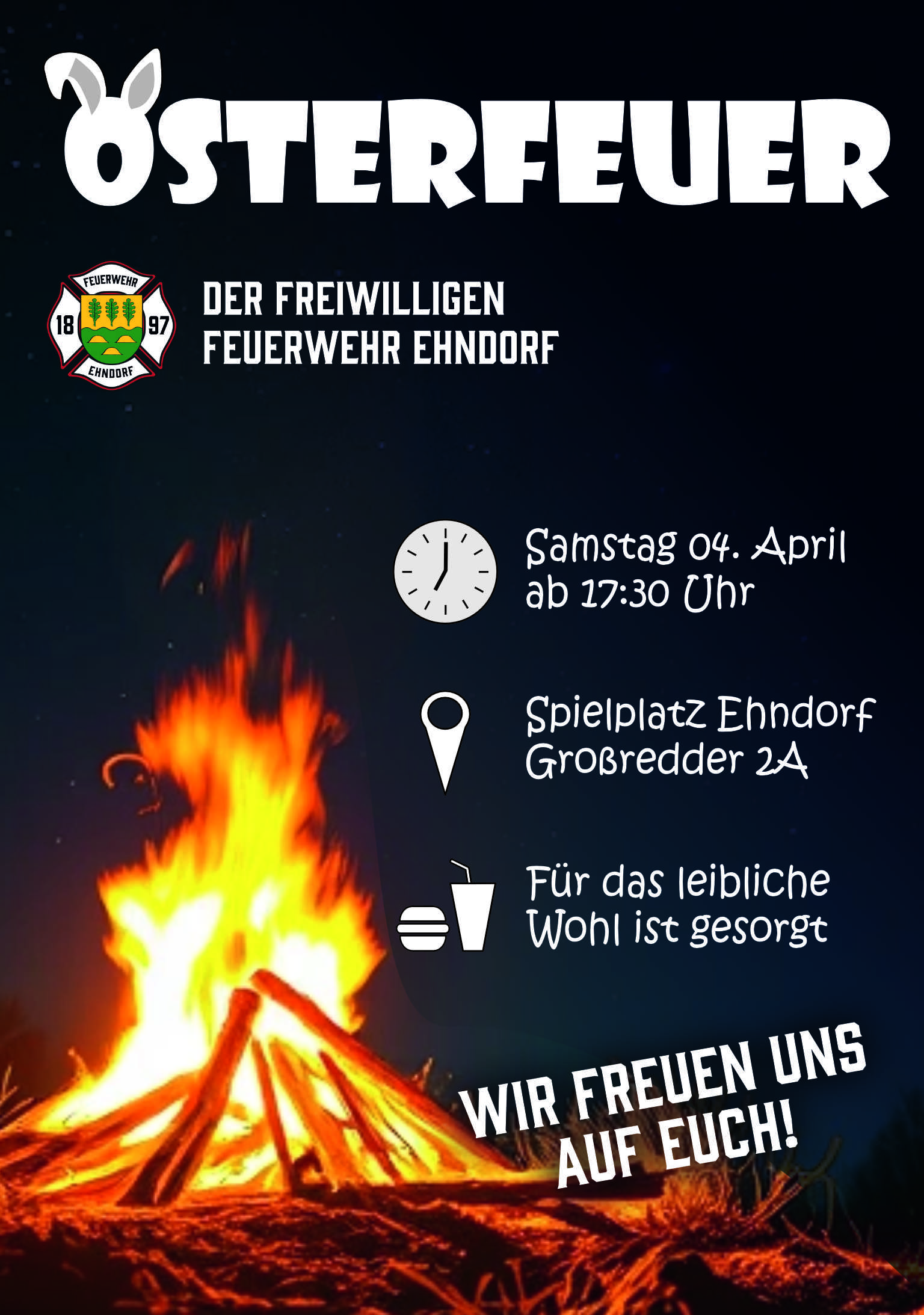 Wir laden euch ganz herzlich zu unserem Osterfeuer am 04.04. ein!